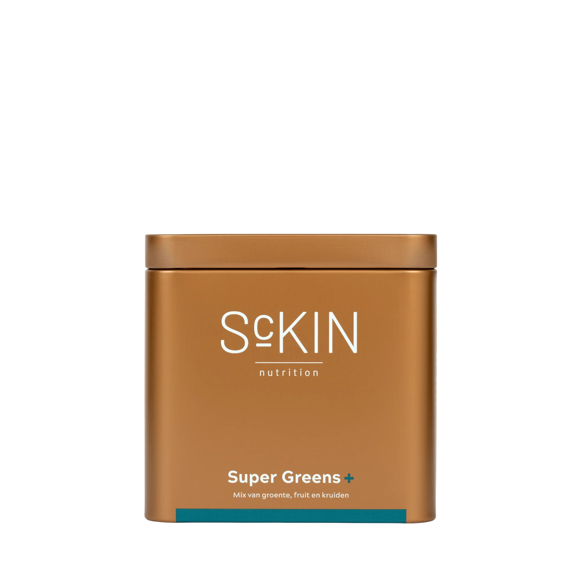 Sckin Super Greens+ bevat spirulina, chlorella, tarwegras, gerstegras, groene thee-extract en vezels. Deze natuurlijke ingrediënten werken synergetisch samen om het lichaam te detoxen en de huid te voeden van binnenuit. Deze groene poeder is 100% plantaardig en vrij van kunstmatige toevoegingen.